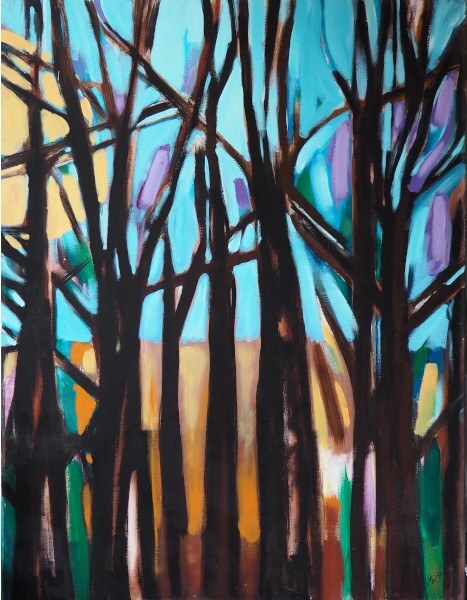 58. SŁOŃCE PRZEŚWIETLAJĄCE PRZEZ DRZEWA, Magdalena Hajnosz, akryl na płótnie