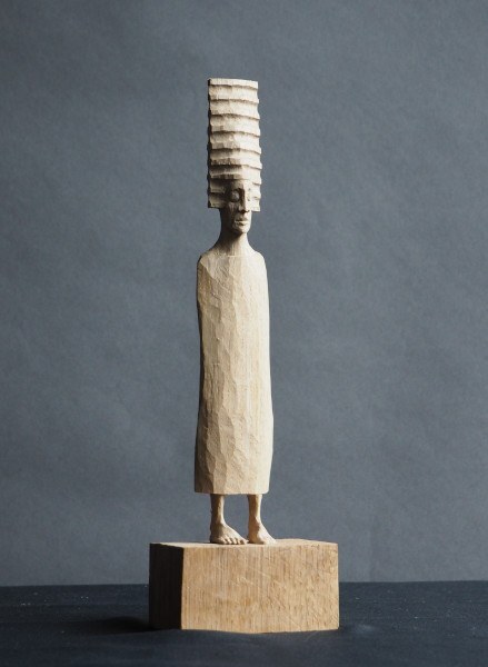 8. POSTAĆ W PRĄŻKOWANEJ CZAPCE, Marcin Rząsa, drewno