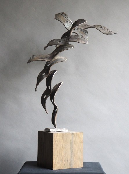 31. ŻURAWIE W KLUCZU, Janusz Owsiany, metal spawany, czarny dąb