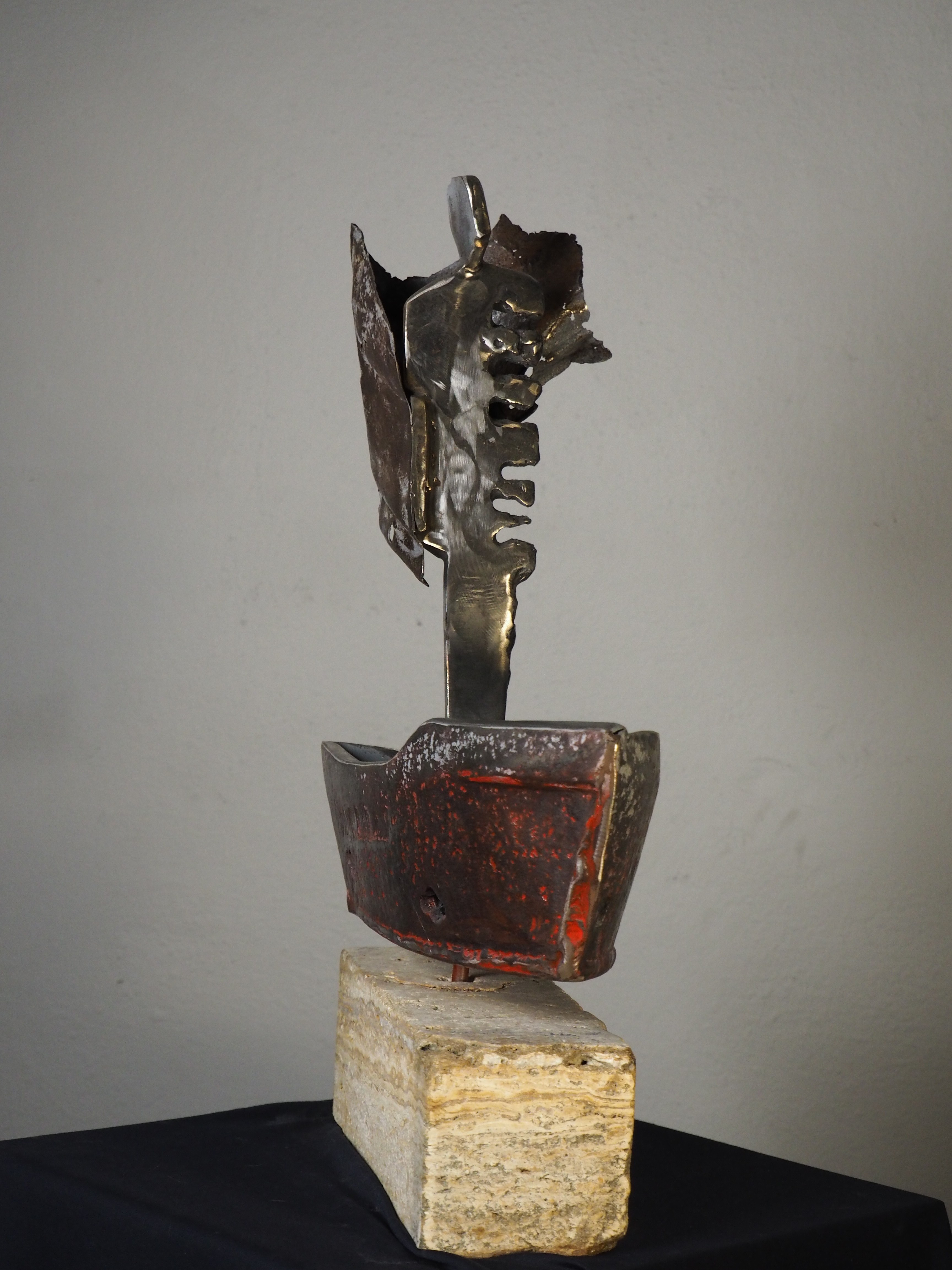 40. ŁÓDZ Z PIELGRZYMEM, Janusz Owsiany, metal spawany, kostka wapienna