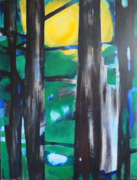 58. SŁOŃCE PRZEŚWIETLAJĄCE PRZEZ DRZEWA, Magdalena Hajnosz, akryl na płótnie